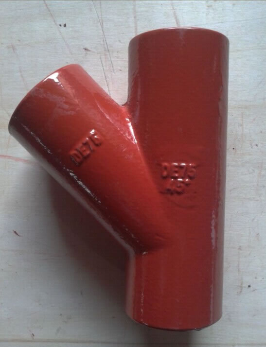 歐標(biāo)三通,EN877 red epoxy coated 75 75 45°